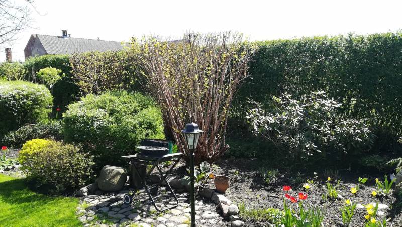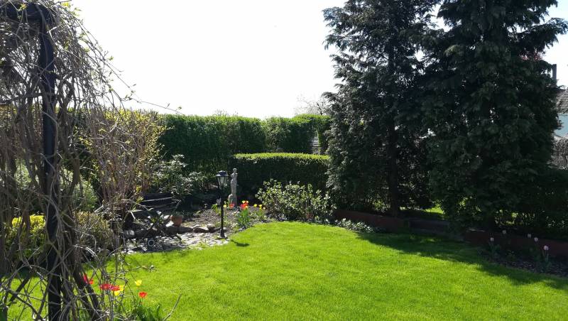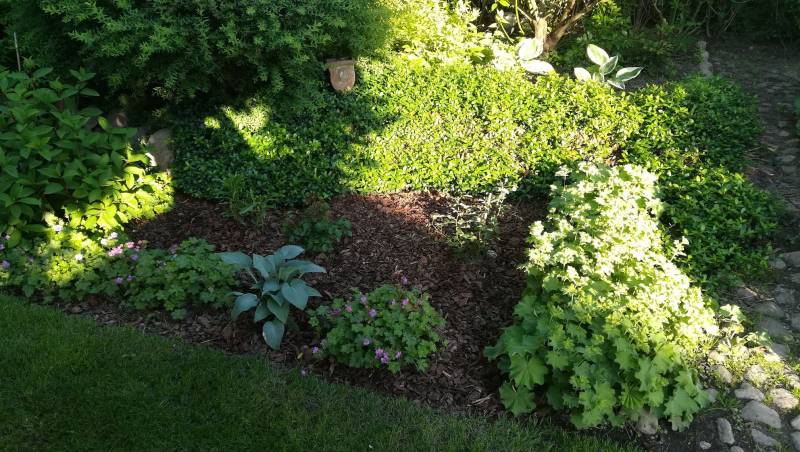 Chyba przymrozek podniszczył mi barwinka. Ni nic, odrośnie. Generalnie jeszcze ubogo. Zasadnicza zmiana przychodzi wraz z rozwinięciem się liści winobluszczu.