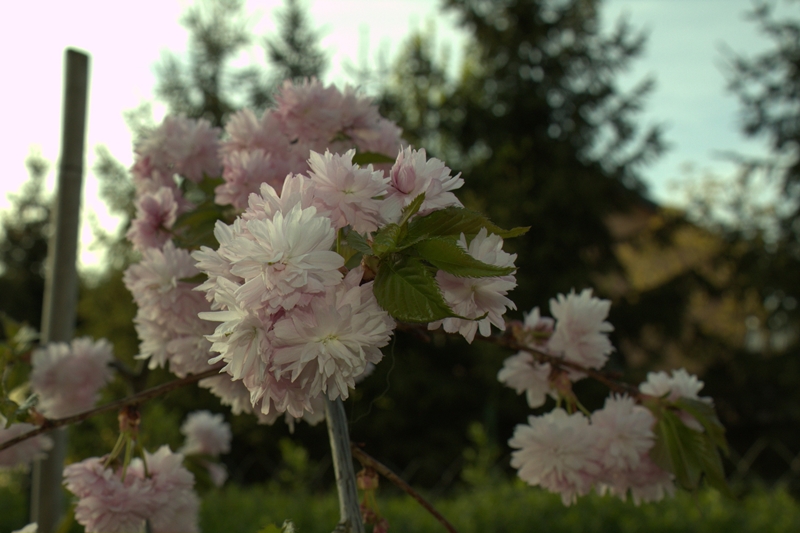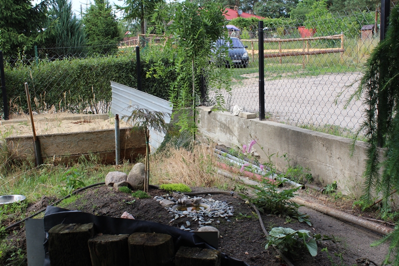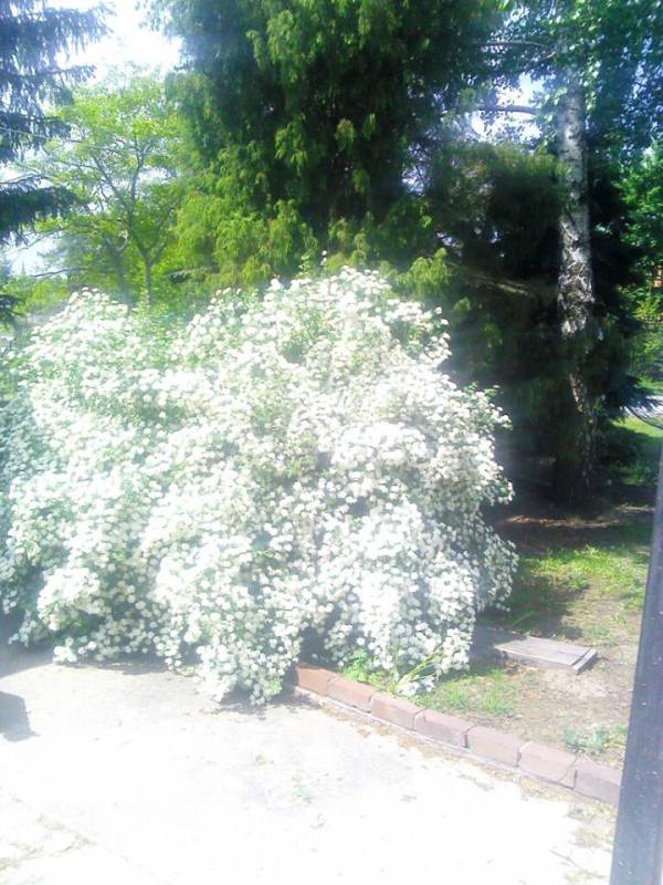 Wszystko powolutku zaczynało nabierać kształtu i koloru, ale sytuacja zmusiła do powrotu do rodzinnego miasteczka. Tu na dużej działce z malutkim domkiem rosły brzozy, świerki , orzechy włoskie i kawałek olbrzymiego żywopłotu z bukszpana. Wycięliśmy tylko jednego orzecha, reszta została. Problemem była ziemia, piaszczysta i kwaśna, dodatkowo nieogrodzona i 50 metrów od lasu, z którego podczas ulewnych deszczy, szorowały potoki kwaśnego piachu. Najpierw zaczęłam od wrzosowiska pod świerkiem, nawiozłam torfu z łąki. Zimą przyszła fala suchego mrozu i wszystko szlak trafił. Pod brzozami nie dało się nic wsadzić, bo masa splątanych korzeni nie pozwoliła nawet wbić szpadla. Z poprzedniego miejsca przywiozłam kilka roślin, niestety przeżyła tylko tawuła (chyba szara), która dziś ma ponad 2 metry i mahonia. Kupowałam i sadziłam przypadkowo rośliny. Nic nie chciało rosnąć, albo ja nie miałam czasu i zdychało.