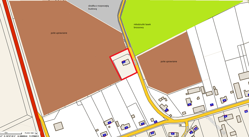 Działka jest wycięta z pola, które jeszcze dwa lata temu było uprawiane -więc okolica ...cicha
