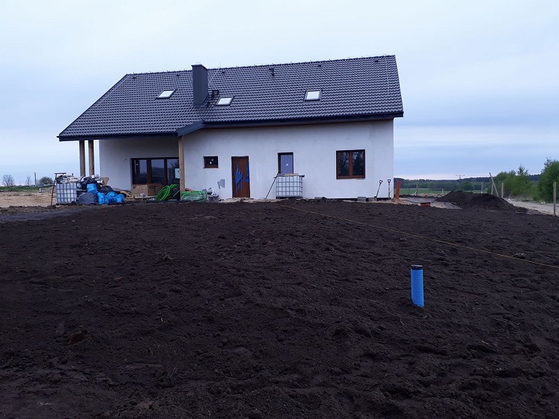 Ziemia -glina, więc budowa była nie lada wyzwanie dla ciężkich samochodów -czyli dostaw wszystkiego! Cegły, dach, okna -wszystko wjeżdżało do nas wtedy jak przez co najmniej trzy dni nie padało a lato 2017 -nie rozpieszczało.