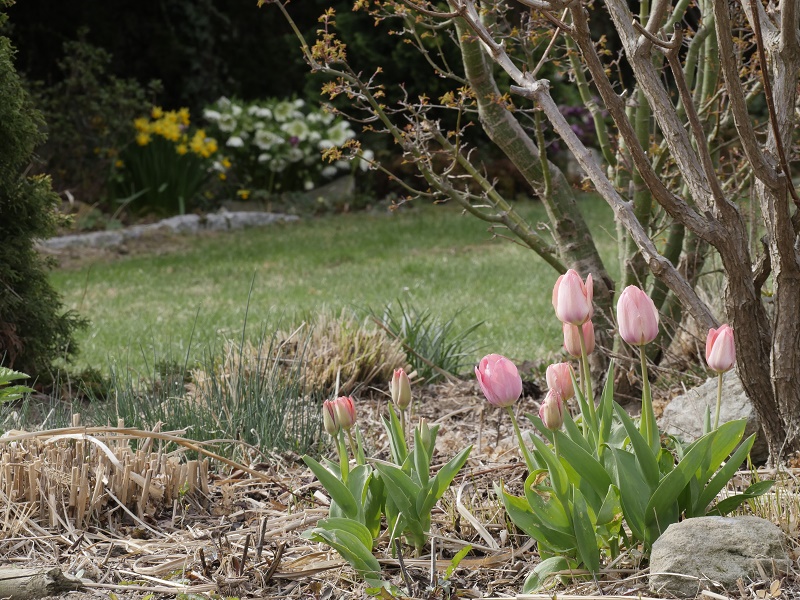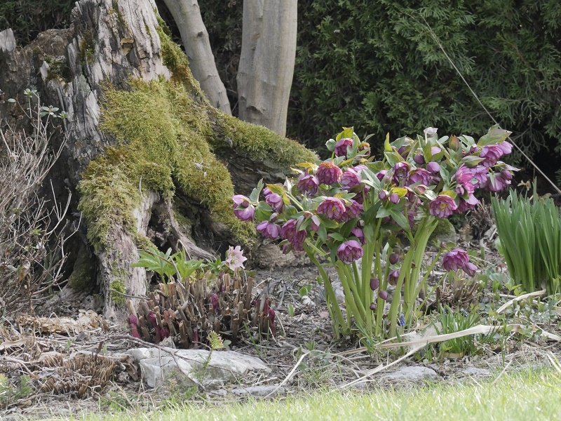 Monia zawilec już pomalutku traci ten swój młodzieńczy, ciemny kolorek ale dalej przyciąga wzrok... Na termomentrze wskoczyło jakieś -5... na szczęście rośliny pod workami dały radę... Nawet magnolia Mighty Mouse , z już pęknietymi pakami fajnie wygląda- dobrze, że taka mała. Jak pąki rodkowe przetrwały to zobaczymy za jakiś czas. Oby tylko już żadne mrozy nie przyszły. Najbliższe dni +20 to ruszy wszsytko z kopyta.