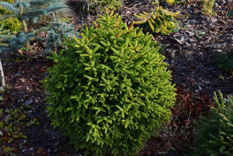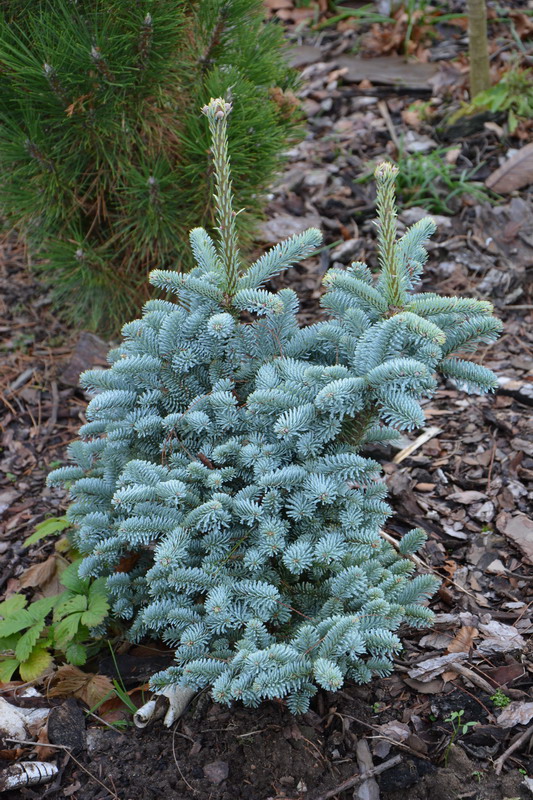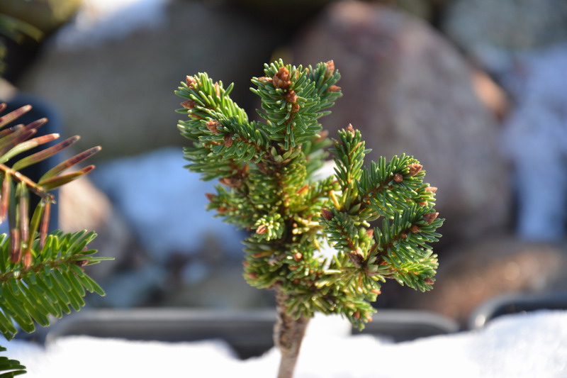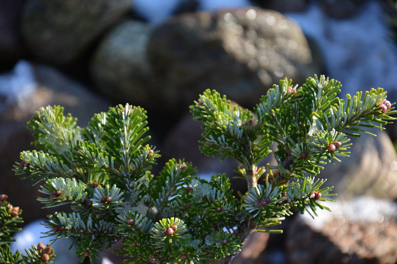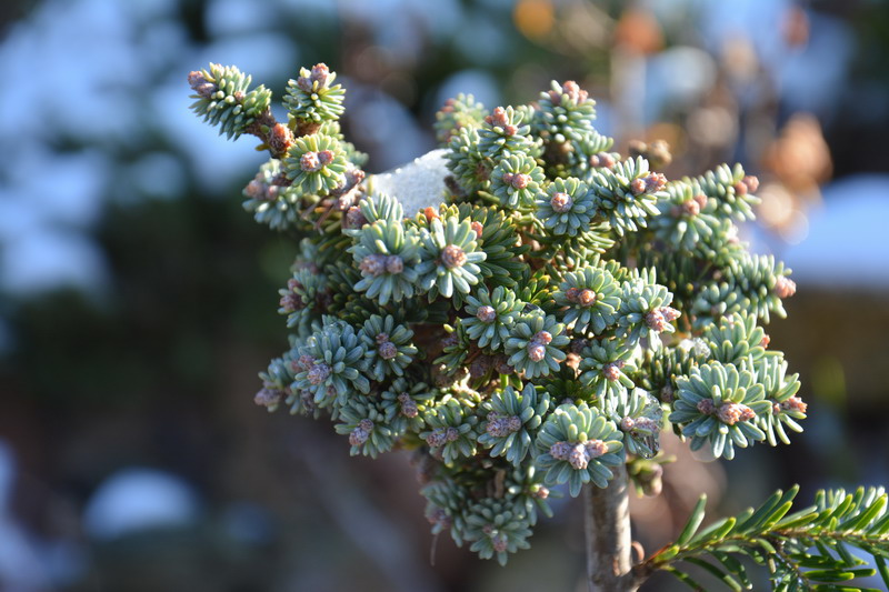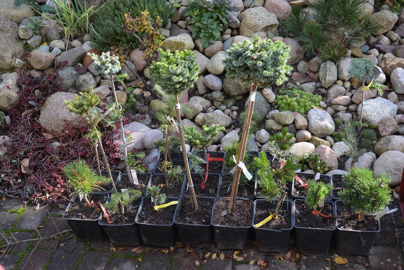 Jeśli chodzi o środki grzybobójcze, to nie ukrywam, że stosuję twardą chemię. Staram się dobierać środki w miarę nieszkodliwe dla środowiska (szczególnie dla pszczół), ale bez tego po prostu się nie da. Pryskam tak mniej więcej co miesiąc i to głównie te najmniejsze rośliny. Takie miniaturowe, zbite iglaki tworzą doskonałe środowisko dla grzybów i często jest tak, że gdy choroba stanie się widoczna gołym okiem, to na oprysk jest już za późno. Przy takiej ilości nie ma fizycznej możliwości regularnego dokładnego oglądania każdej z nich. Opryski zaczynam tak mniej więcej w połowie marca, gdy temperatura przekroczy na dobre +5 stopni.