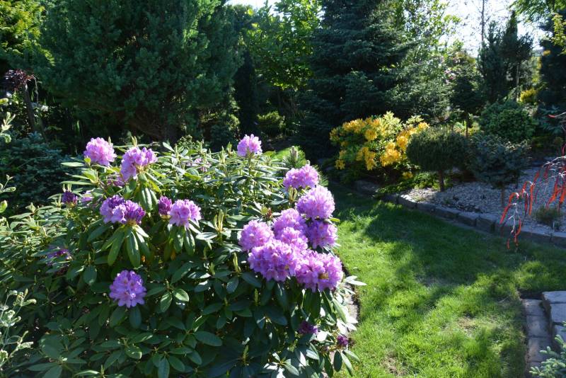 Tym sposobem, mam wszystko, lub prawie wszystko, a to kwitnące, bujnie i kolorowo lilie, liliowce, kolorowe liście żurawek, hosty co sezon w innym typie, trochę mchu i paproci