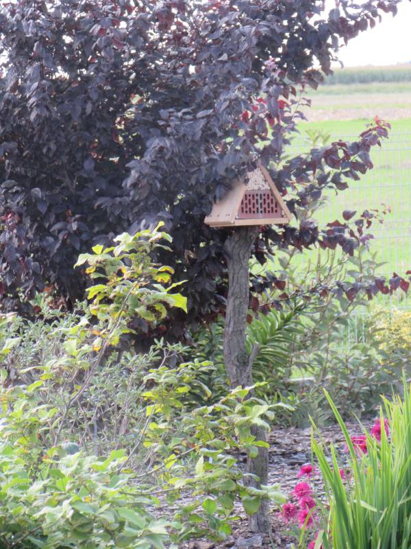 . Otwór wlotowy powinien być nieco mniejszy tj. ok. 1,5-2 cm średnicy. Domki dla trzmieli umieszczamy niżej, w zacienionym miejscu.