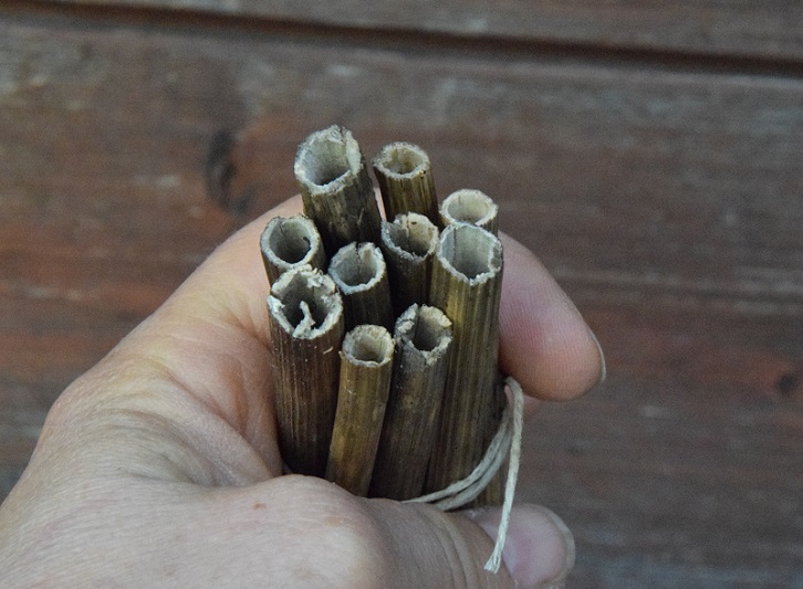 jest bardzo prosta. Najchętniej zimują one w pustych łodygach (np. malin, dzikiego bzu lub bambusa, itp.). Wystarczy pociąć je na równe kawałki ok. 10-15 cm. długości i związać razem. Ważne, żeby łodygi miały wlot tylko z jednej strony. Najlepiej jak wykorzystamy naturalne kolanka zamykające przestrzeń. Wtedy domek dla dzikich pszczół mamy właściwie gotowy. Wystarczy powiesić taki pęczek w osłoniętym miejscu i czekać na lokatorów