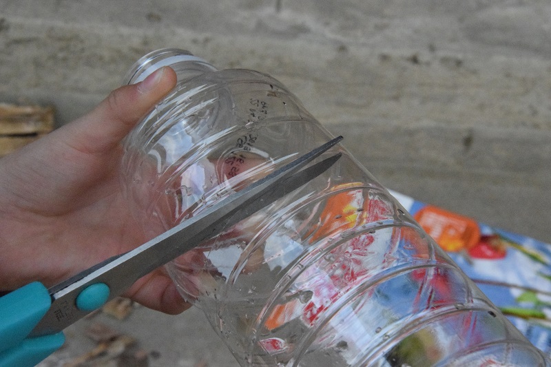Odcięłam dno plastikowej butelki: