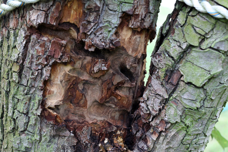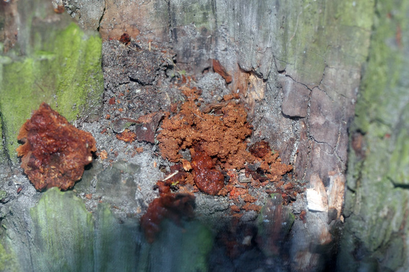 W zeszłym roku wyraźne zapachowe znaki przyciągające szerszenie i inne owady znaleźliśmy na naszym starym dębie, a u córki na dużo młodszym dębie. Przekonani że to jest coś innego zięć za zgodą urzędu wyciął dęba i okazało się, że to nasza trociniarka mocno go podziurawiła.