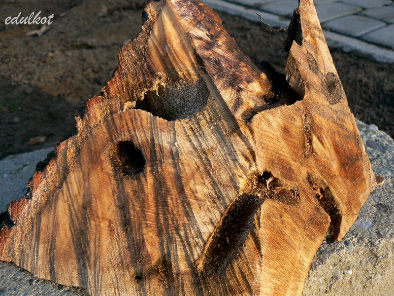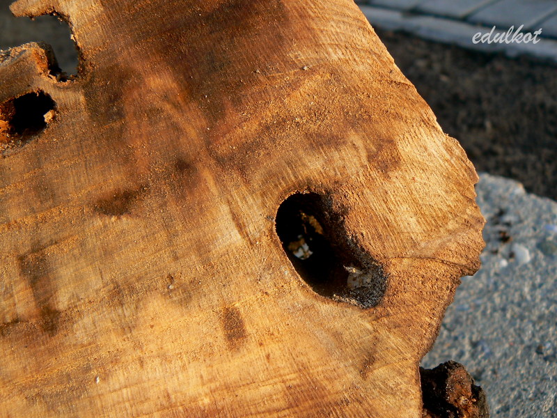 Natomiast z naszego dębu spadają płaty kory z takimi otworami, choć trociniarki nie widziałam bo to jest dobrych kilka metrów nad ziemią, ale podejrzewam że to ona.
