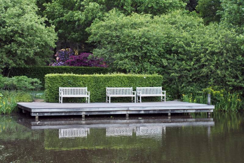 Szczególnie imponujące są otwarte krajobrazy oddzielone "liniami" drzew i żywopłotami od reszty ogrodu.