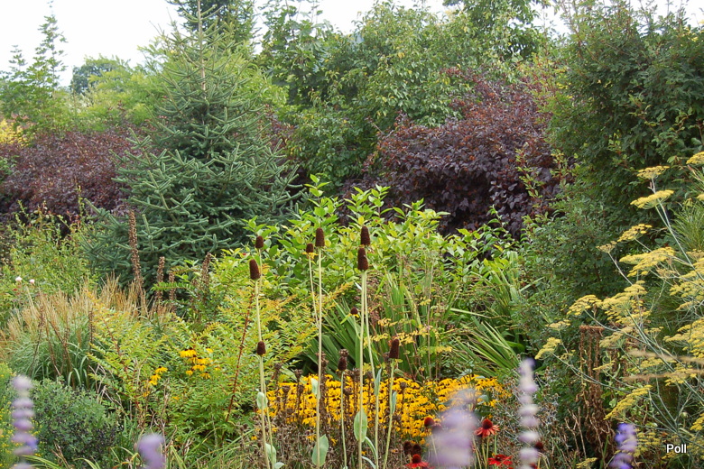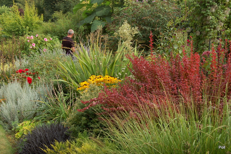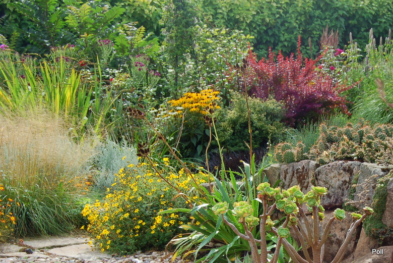 Oprócz roślin, które stale rosną w tej części, sezonowo umieszczane są chyba także inne, o mniejszej mrozoodporności, ale świetnie się z resztą komponujące