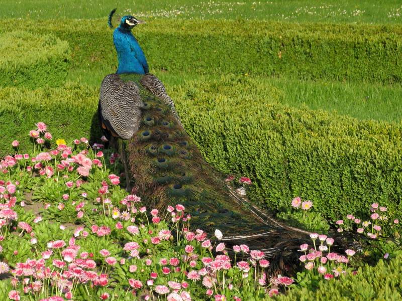 W ogrodzie znajduje się kolumnada o długości 224 m z posągami przedstawiającymi postacie z mitologii greckiej.