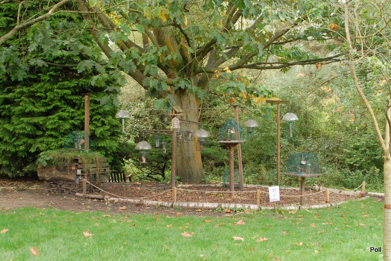 My rozpoczniemy od lewej strony.... The Croft, dom botanika Roberta Williamsona, był miejscem, gdzie narodziło się Królewskie Towarzystwo Ochrony Ptaków (RSPB). To właśnie żona twórcy ogrodu skalnego, pani Emily Williamson, wielka wielbicielka dzikiej przyrody a szczególnie ptaków, w 1889 roku, utworzyła w proteście przeciwko hodowli ptaków w celu pozyskiwania piór m.in do kapeluszy damskich, grupę składającą się z podobnie wrażliwych osób, zwaną Plumage League". Grupa ta, działając bardzo dynamicznie, zyskała popularność a po połączeniu z inną - 'Fur and Feather League' utworzyła RSPB. Do dziś, na terenach parkowych, odbywają się spotkania miłośników ptaków w celu ich obserwacji a także pogadanki szkoleniowe. Jedną z ekspozycji służących tym celom jest zespół poidełek i karników dla ptactwa