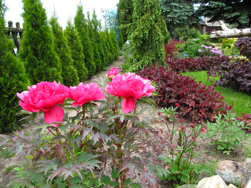 Sosny, magnolie i kamień polny....ogród zwyczajny. |