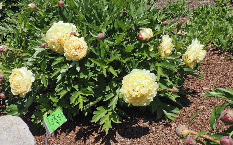 Hodowca: Irene Tolemeo, USA, 2010 Kwiaty: pełne, mocno upakowane, żółte z brzegami zewnętrznych płatków blaknącymi do koloru kości słoniowej (Ø 15-20 cm) Wysokość: 70 cm Pędy: sztywne, ale pod ciężarem olbrzymich kwiatów mocno się uginają Liście: żywo-zielone, ciemne, mocno wcięte, typowe liście itohów Termin kwitnienia: koniec maja, ale kwitnienie jest rozciągnięte w czasie i trwa dłużej niż u innych odmian