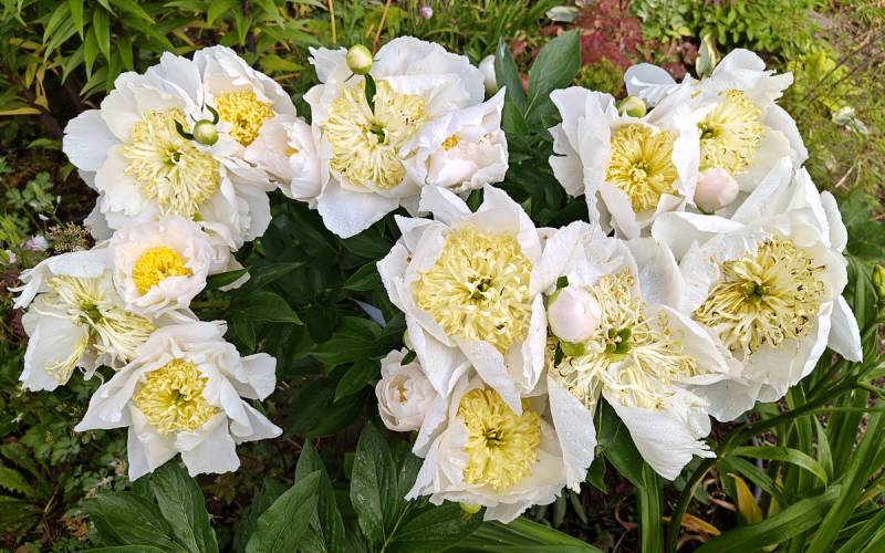 Hodowca: Don Hollingsworth, 2005 (USA) Kwiaty: anemonowe, płatki mlecznobiałe, środkowy segment wyraźnie żółty, kwiaty o symetrycznej misce o średnicy ok. 15cm, liczne pąki boczne przedłużają kwitnienie Zapach: delikatny Wysokość: do 100 cm Łodygi: dość sztywne i mocne, obsypane dużymi, ciężkimi kwiatami Liście: duże, ciemnozielone, stanowią efektowne tło dla białych kwiatów Okres kwitnienia: odmiana średnio-wczesna Nagrody: "Best in Show" w 2009 przez American Peony Society