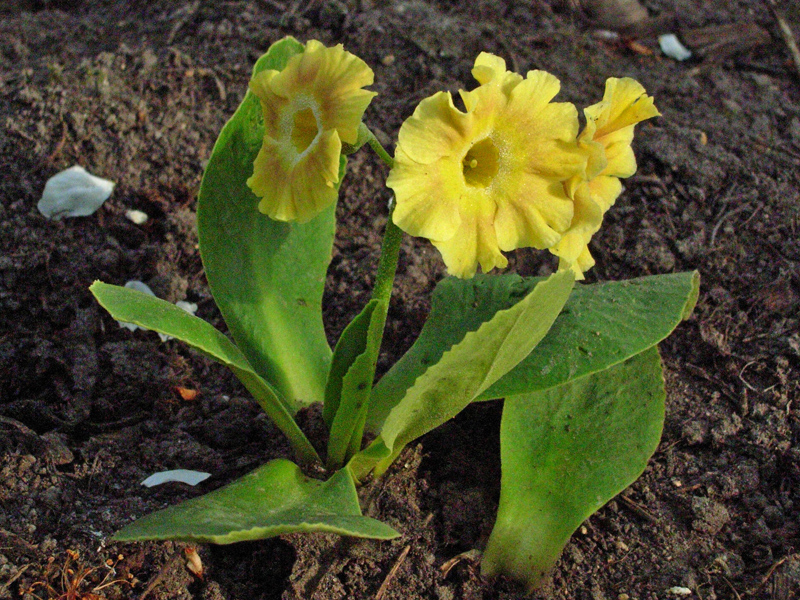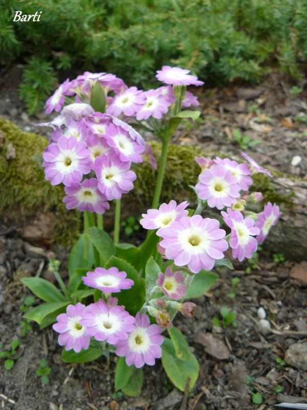 To są moje pierwiosnki omszone (P. x pubescens). Ten pierwiosnek w odróżnieniu od innych lubi, tak jak pierwiosnek łyszczak (p. auricula) ziemię wapienną (stanowiska naturalne w starych górach). Ma dość głęboki system korzeniowy.