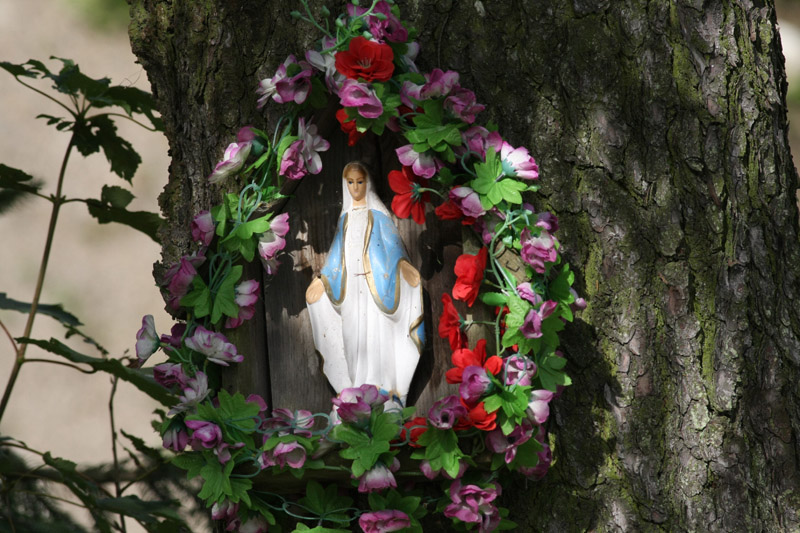Krzyże przydrożne, groty maryjne, figury świętych, kapliczki - stare i nowe, przydomowe, na rozstajach dróg i przy kościołach, w górach, na nizinach,murowane, drewniane, kamienne... Piękne i na granicy kiczu , ale postawione z jakiegoś powodu , widać ważnego dla tego, kto ją tam ustawił.Takie cuda można spotkać w całej Polsce , bo są na trwałe wpisane w Polski krajobraz, bez względu na religię, jaką wyznawali jej twórcy, czy fundatorzy. Często znikają na terenach zabudowanych, są niszczone przez wandali, rozsypują się niekonserwowane....