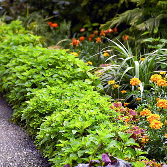 Warzywa i zioła mają swoje miejsce w ogrodzie kwiatowym. Brian Minter wykorzystuje zioła do obsadzania krawędzi i granic rabat, a ma przede wszystkim słabość do różnych gatunków mięty ponieważ wyrasta ona wcześnie i towarzyszy nam w ogrodzie do późna. "W ogrodzie, integracja jest