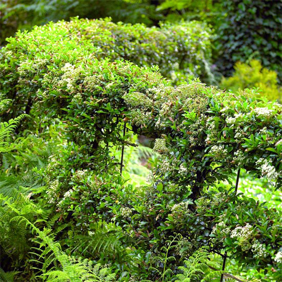 Brian tworzy iluzję dużej przestrzeni przez jej zwężenie. (trawnik) "W ogrodzie jest węższy o 8 stóp (ok. 2,40 m) na końcu, niż jest na pierwszym planie, w którym mierzy 20 stóp (ok. 6 m) od bukszpanu do bukszpanu," mówi Brian. Rezultat: przestrzeń, którą obserwujemy wydaje się półtora raza większa niż jest jej rzeczywista długość.