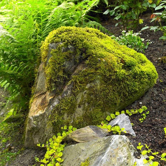 Należy zwrócić uwagę na teksturę liści, a także rozmaite barwy. Oto, na przykład, fioletowa Żurawka sprawia piękny kontrast wobec Dąbrówki rozłogowej 'Burgundy Glow' i szaro-niebieskich kamieni.