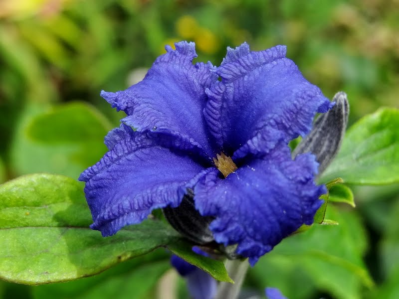 Kwiaty: małe, intensywnie niebieskie, średnica 2 cm, złożone z 4 fryzowanych, wywiniętych działek; kwitnie VII˗IX.