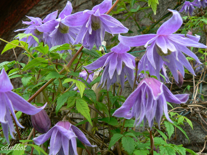 Kwiaty: fioletowobłękitne, małe, półpełne, po rozwinięciu, średnica 6-8 cm, kwitnie kon. IV˗V