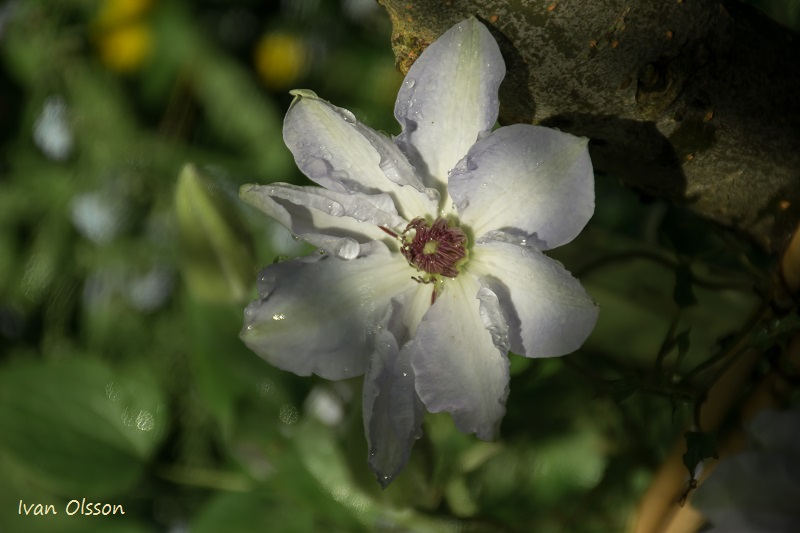 Hodowca: Magnus Johnson, Szwecja, 1955 Wielkość: dorasta do około 2 m wysokości, pnie się po podporach za pomocą ogonków liściowych Kwiaty: białe z niebiesko cieniowanymi brzegami, składają się z 6˗8 działek o lekko pofalowanych brzegach i purpurowych pylnikach na białych nitkach, duże, średnica 8˗14 cm. Kwitną obficie V˗VII i po przycięciu przekwitłych kwiatów VIII˗IX. Stanowisko: każde, ale nie lubi miejsc wietrznych a w miejscach gorących kwiaty bledną i kwitną krócej. Gleba żyzna, przepuszczalna i wilgotna, o odczynie obojętnym lub lekko kwaśnym Cięcie: słabe... w pierwszym roku na wysokości 30 cm od ziemi nad silnymi pąkami, w drugim 70 cm, a w następnych latach 150 cm Mrozoodporność: dobra (strefa 4)