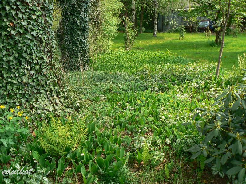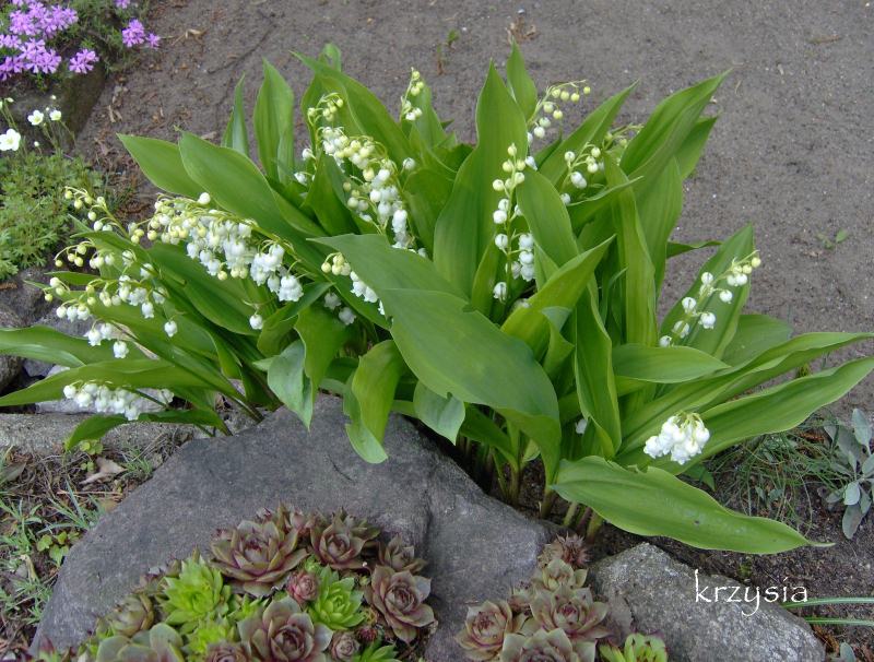 Dawno temu, zakładając skalnik nie wybrałam konwaliowych kłączy zbyt dokładnie, przez wiele lat każdej wiosny wyrywałam to co wychodziło z ziemi, zostawiając tylko jeden bukiecik,