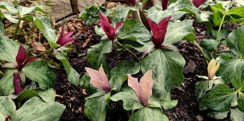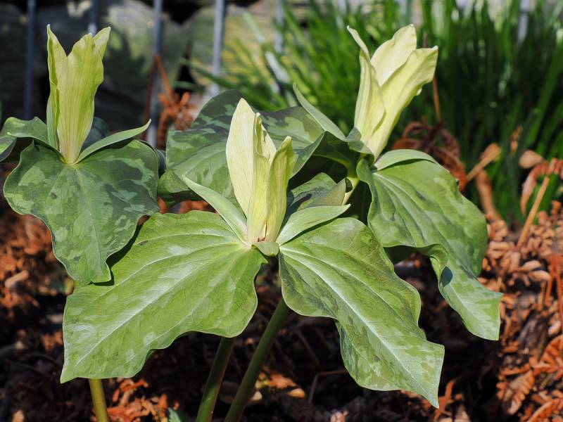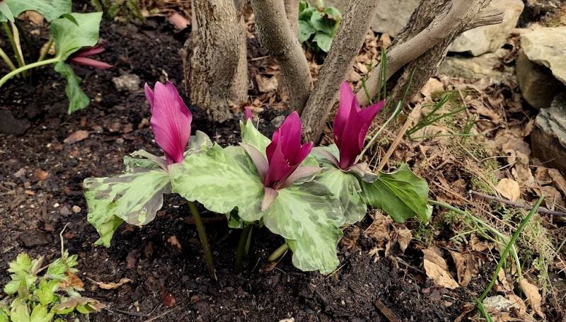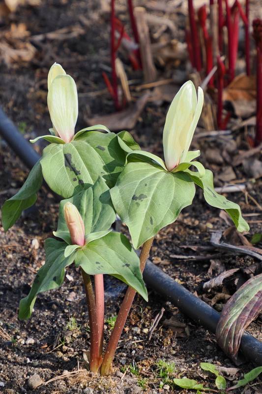 I u mnie jako pierwsze kwitną krzyżówki Trillium chloropetalum.