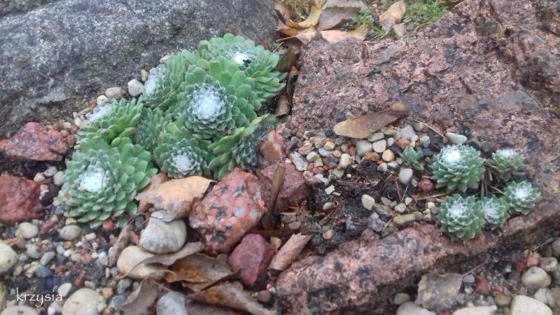 Rojniki znam od zawsze, podobnie jak hosty, choć do niedawna nie miałam pojęcia, że jedne i drugie występują w takiej ilości odmian. Mój niewielki skalniak ucierpiał chyba najbardziej w trakcie remontu i naszych rodzinnych perypetii, ale trochę roślin udało mi się uratować m.in. rojniki. Najlepiej przetrwały rosnące na kamieniach. We wrześniu skalniak przeszedł renowację, posegregowałam rojniki 'na oko', posadziłam i czekam do wiosny.
