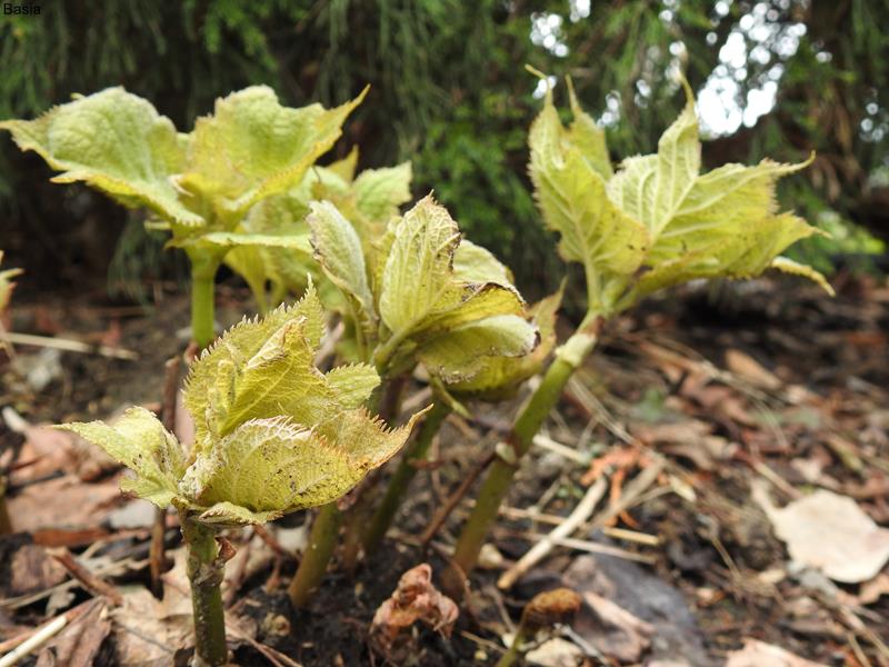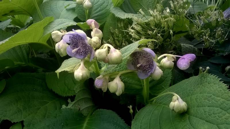 Bylina wysokości 40-50 cm o niezwykle ciekawym wyglądzie. Kwitnie w czerwcu/lipcu niewielkimi fioletowo-niebieskimi kwiatami. Niewymagająca, całkowicie mrozoodporna. U mnie rośnie w cieniu, ale w godzinach dopołudniowych ma nieco słońca. Posadziłam w ziemię kompostową trzy lata temu i od tej pory nie nawożę. Towarzyszą jej rododendrony więc może mieć nieco kwaśne podłoże.