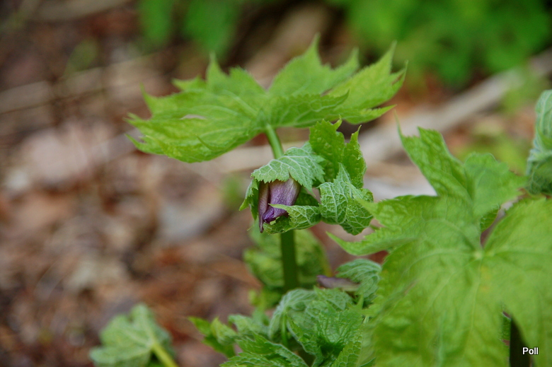 Glaucidium palmatum pojawia się na powierzchni ziemi, błyskawicznie, w ciągu dosłownie kilku dni rozwija liście i ukazuje ukryte w nich kwiaty.
