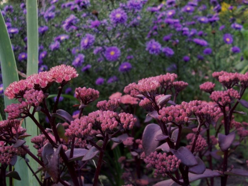 "Martona', to rozchodnik o ciemnych łodygach i niebieskofioletowych, ząbkowanych liściach, tworząca okazałe, widowiskowe kępy