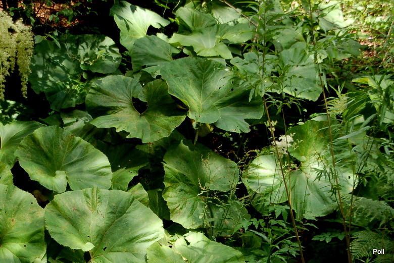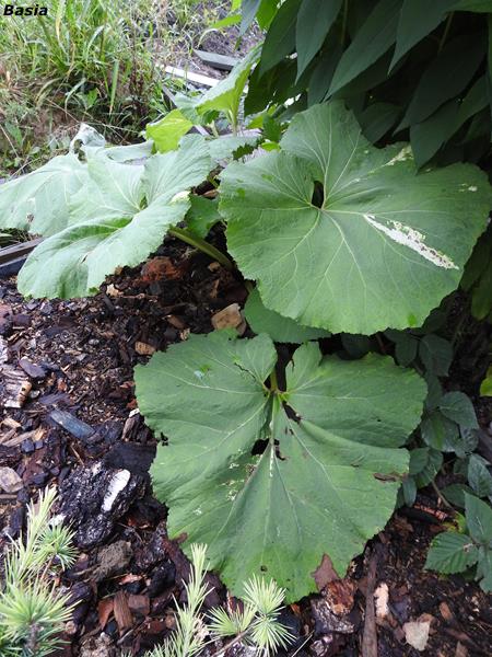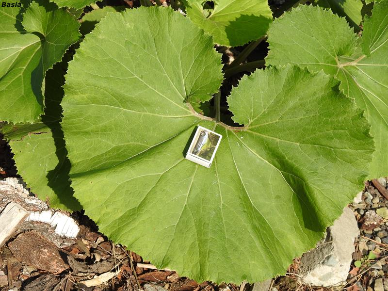 Ok.150 cm wysokości, przy podobnej rozpiętości - taką wielkość potrafi osiągnąć lepiężnik japoński , jeśli ma zapewnione warunki, jakie lubi:
