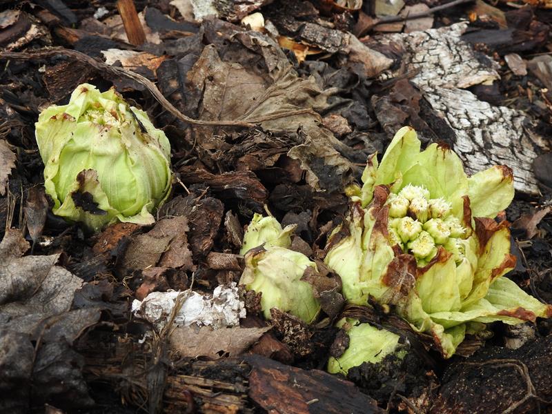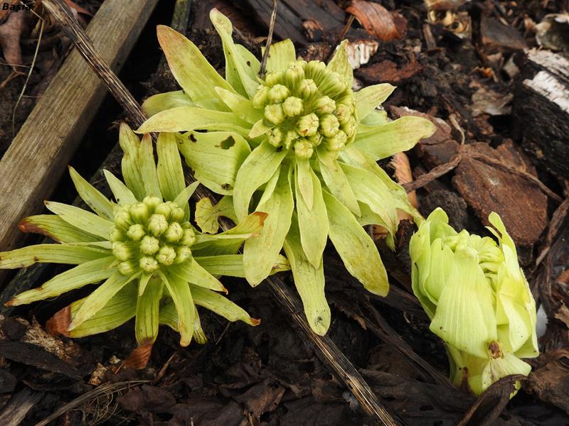 Kogo - jak mnie - nie przeraża ta cecha, znajdzie w lepiężniku wdzięczna roślinę do nasadzeń nadwodnych ( może rosnać także w kilkucentymetrowym zatopieniu), która nie wymaga jakichkolwiek zabiegów pielęgnacyjnych ... prócz ewentualnej ochrony przed ślimakami, dla których stanowi wielki przysmak . Ciekawą cechą lepiężnika jest pojawianie się wczesną wiosną kwiatów a dopiero potem i w nieco oddalonych miejscach, liści. U mnie, pierwsze pąki zauważam już na początku marca i jeśli przedwiośnie jest dość ciepłe, już w kwietniu pąki rozwijają się w kwiaty. Niestety, niesprzyjająca aura z przymrozkami w naszym klimacie hamuje zazwyczaj rozrost pąków i często je uszkadza.