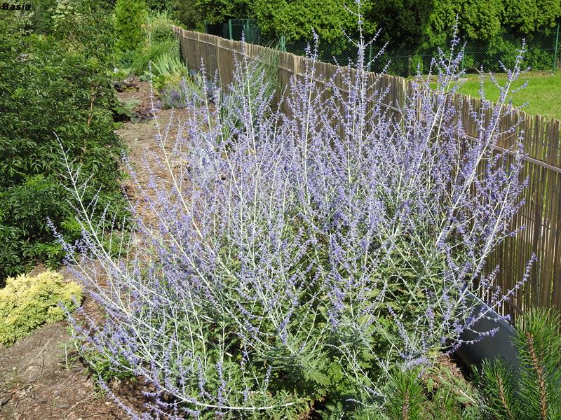 Perowskia łobodolistna 'Blue Spire' na mojej alejce różanej. W miarę upływu sezonu, rozkłada się dość szeroko.