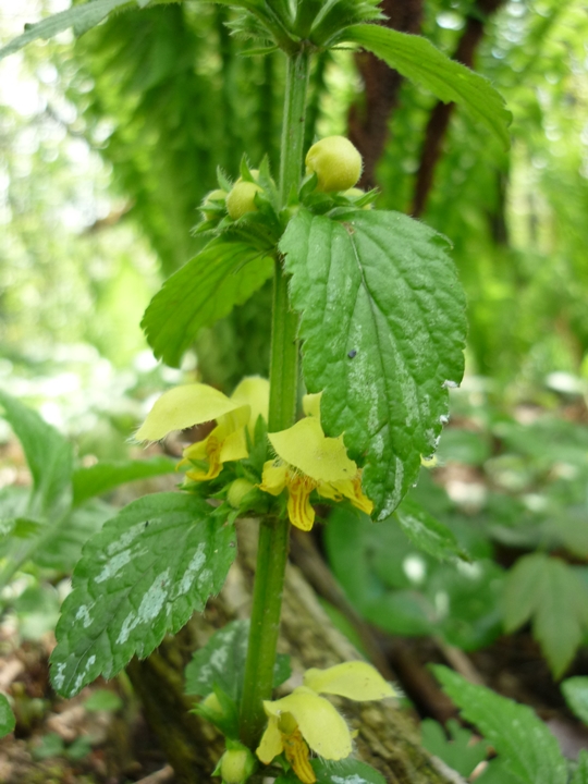 Kwiaty: żółte, dwuwargowe, na wzniesionych łodygach w kątach liści (V-VI)