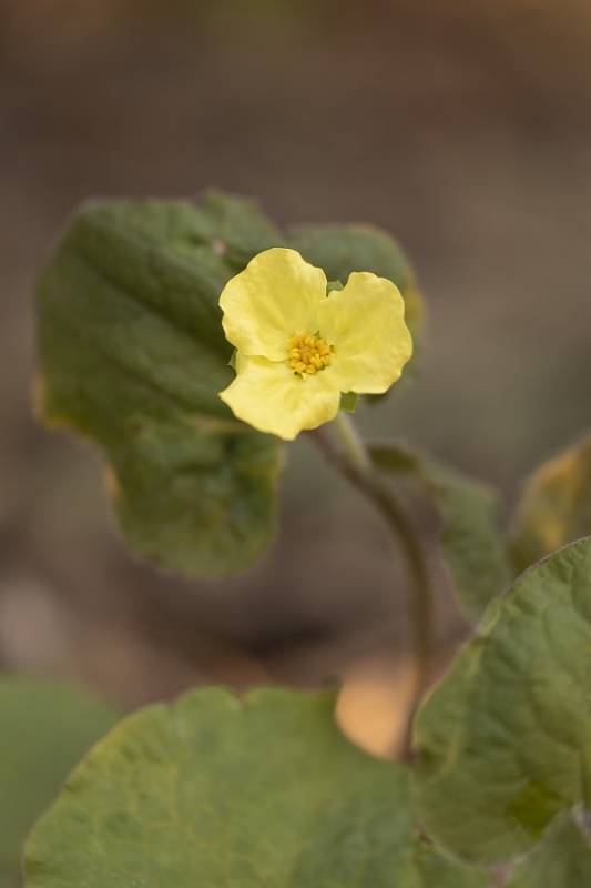 Kwiaty w kolorze żółtym mają po trzy pomięte płatki wokół żółtych pręcików. Wyrastają w kątach liści na średniej długości ogonkach.Kwitnie od kwietnia, powtarzając kwitnienie przez całe lato. Po kwitnieniu wytwarza nasiona.