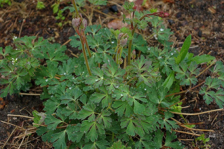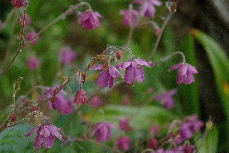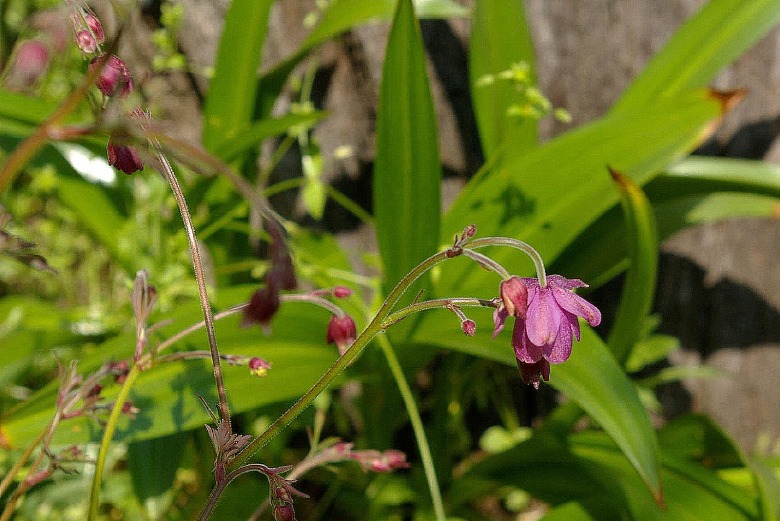 Mnie, bardziej przypominają listki kokoryczy. Szybko zaczyna wegetację i już w IV cieszy nie tylko niebieskawozielonym kolorem kęp, ale podziwiać możemy pojawiające się pędy kwiatowe, które w miarę wzrostu wypuszczają boczne odrosty, tworząc luźną wiechę . Pierwsze ciemnoróżowe kwiaty, nieco podobne do kwiatów orlika, ale sporo mniejsze i nie posiadające charakterystycznych ostróg, pojawiają się w moim ogrodzie już w ostatnich dniach kwietnia i przez cały niemal maj , rozwijają się stopniowo.