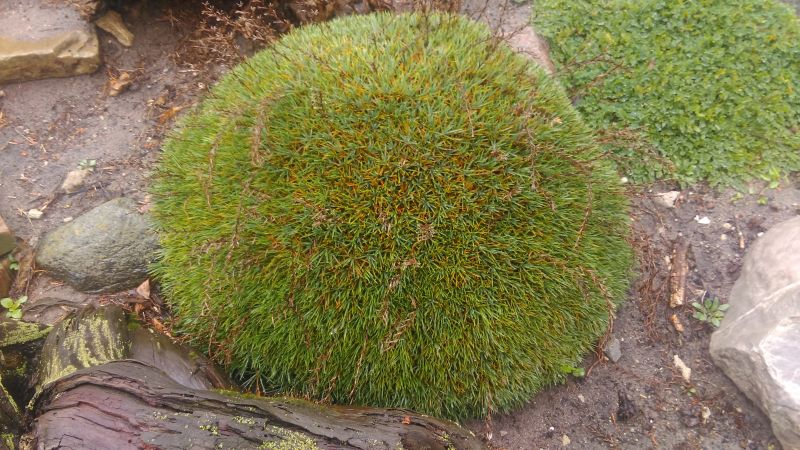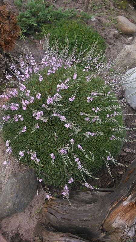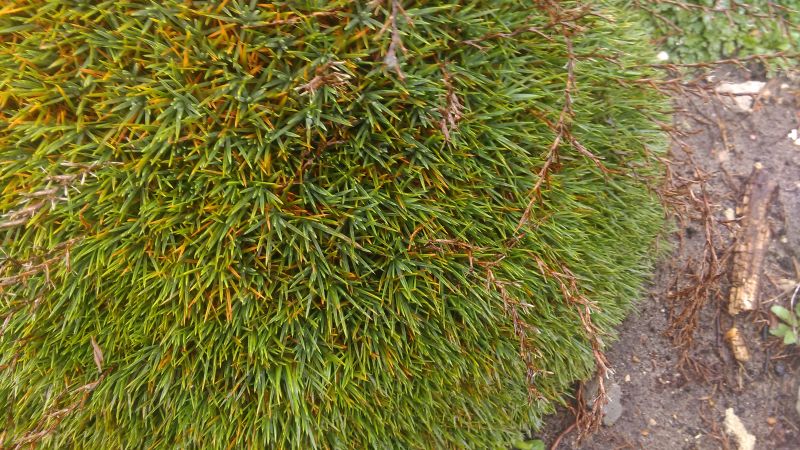 Jest to zimozielona krzewinka tworząca zaokrąglone poduszeczki w kolorze sino zielonym.