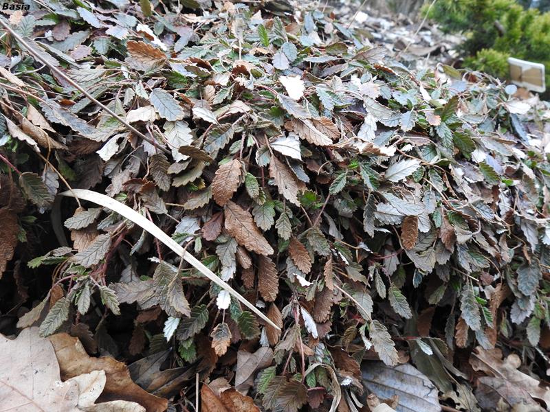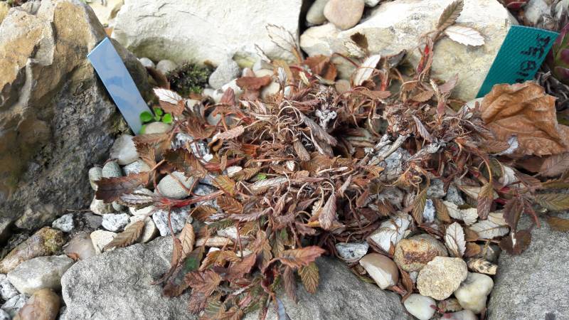 Dryas x suendermannii położył się na ziemi - szykuje się do zimy. Rośnie u mnie na szczycie bardzo suchego skalniaka, w najbardziej gorące godziny lekko ocieniony sporym kamieniem.