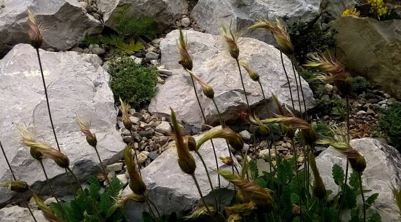 Dryas suendermannii , czyli dębik Suendermana na bardzo suchym, słonecznym skalniaku. Miał problemy z zaadoptowaniem się, ale po dwóch latach zakwitł.