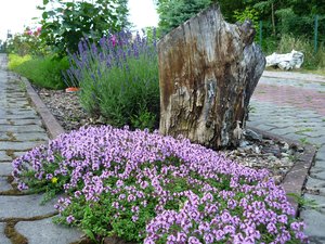 Kwiaty niepozorne, jak u wszystkich macierzanek, lilaróżowe, pojawiają się w VI - VII. Rozrasta się nieco słabiej niż Macierzanka piaskowa, czy pospolita, dlatego łatwiej uprawiać ją w ogrodzie skalnym. Może wypełniać szczeliny w murze lub pomiędzy płytami chodnika.