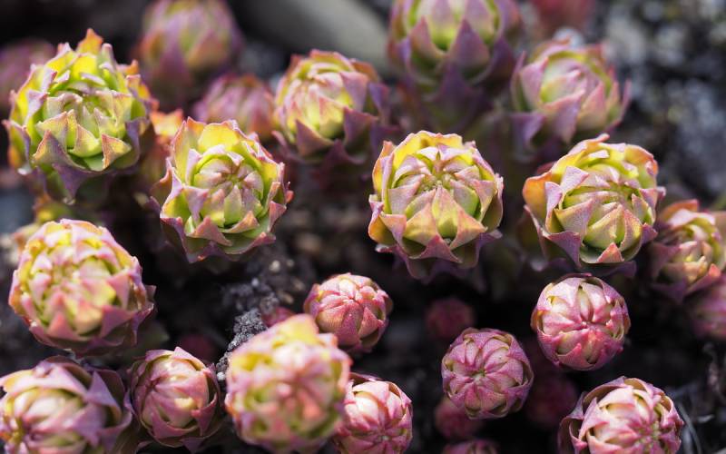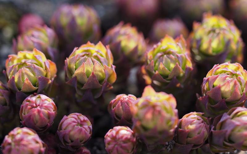 Kwiaty drobne, zebrane w niepełne baldachogrona, na szczytach pędów, w kolorze zielonym, żółtym, czerwonym.