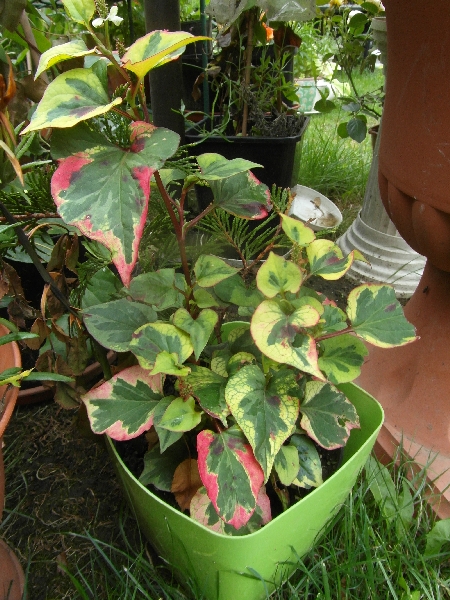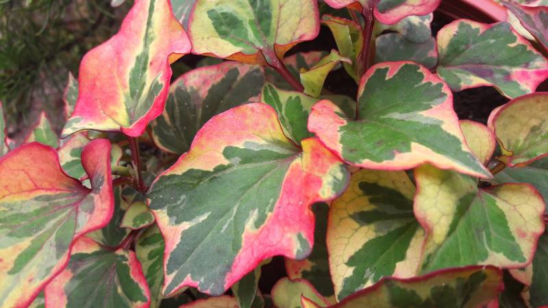 Liść: niezwykle dekoracyjny, sercowaty, w kolorach: różowo-malinowy, krem, zielony.