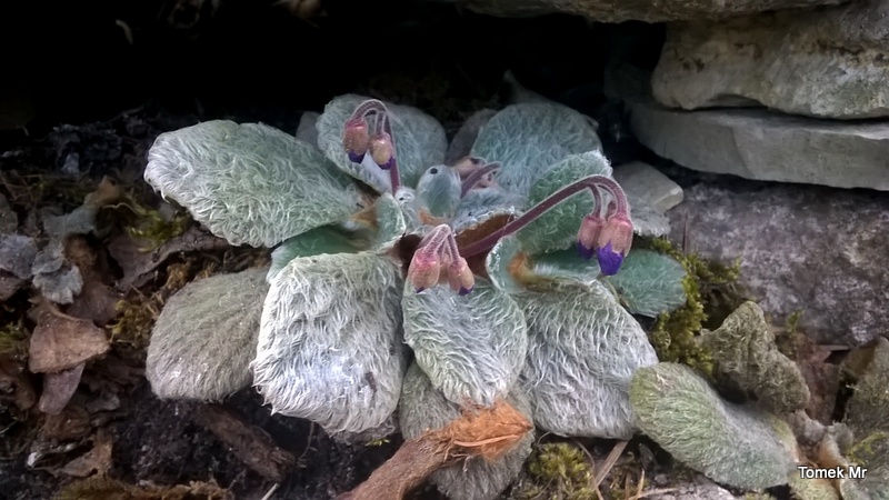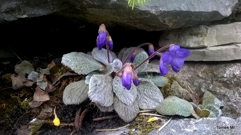 Zasiedla lekko zacienione i wilgotne szczeliny skalne. Tworzy małe rozety niebiesko-stalowych, mocno omszonych liści. Kwitnie zwykle na początku maja.