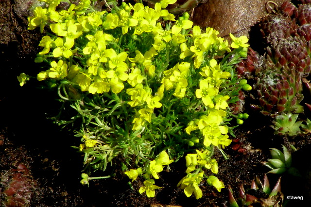 Trochę poszperałem i wychodzi mi na to, że rośnie u mnie Głodek kaukaski (Draba bruniifolia). Naturalnie występuje on w Armenii, Turcji i na Kaukazie.