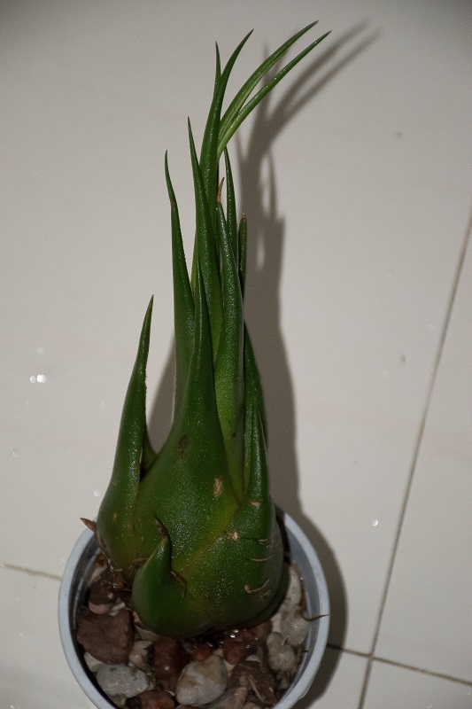 Kupiony już z odrostem, wystającym z listka roślinki macierzystej.