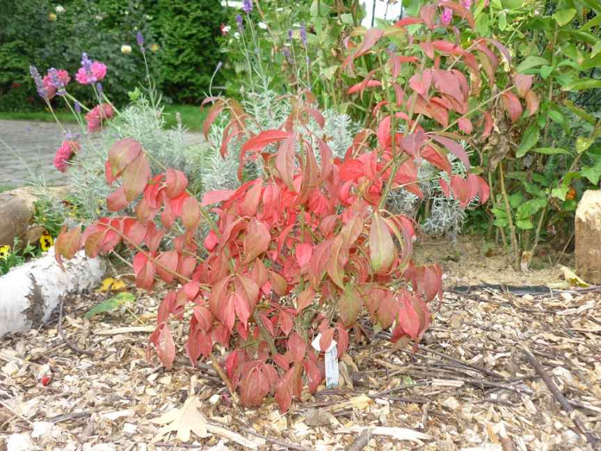 Liście wiosną jasno zielone, latem przebarwiają się w ogniście czerwony kolor.