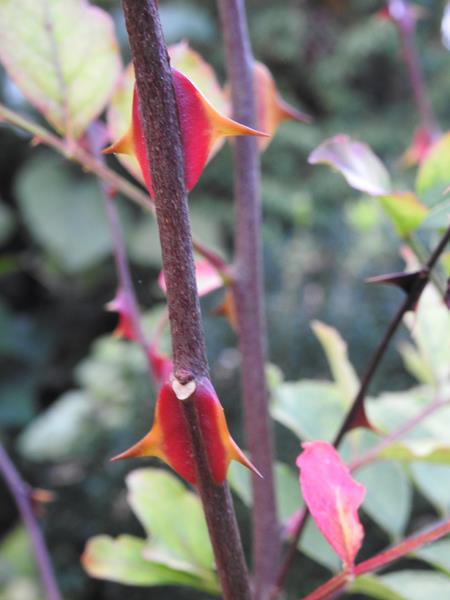 Konary i pędy zaopatrzone są w kolce. Liście duże, złożone pierzasto z 5-15 listków. Kwitnie na przełomie kwietnia i maja, a owoce dojrzewają od lipca do września.
